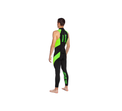 Men's sleeveless wetsuit for open water swimming and other water sports. The suit is made of DSSS-treated neoprene (no GLIDESKIN coating) in different thicknesses: on the belly, chest and back the neoprene is 3 mm, which provides additional buoyancy. On the other areas of the wetsuit it is 2 mm thick, giving you more freedom of movement and flexibility. DSSS neoprene combines lightness, flexibility and strength to provide good buoyancy and thermoregulation while swimming. When worn correctly, the suit fits snugly and does not rub or restrict movement. Flat seams do not rub even during long swims. The YKK (Japan) zipper is on the back and gives you convenient one-handed access, allowing you to quickly put on or take off the wetsuit. The zipper has an outer flap to prevent accidental opening and is secured with Velcro. The sleeveless model is easier and faster to take off, which is important for maintaining speed in the transit area, plus the sleevelessness provides more freedom of movement of the chest and scapular girdle. In warm weather, the suit is perfect for open water swimming, as well as for freediving, snorkeling, SUP surfing, water skiing, wakeboarding and other water sports. The sleeveless wetsuit is also comfortable for athletes with broad shoulders, or arms, for whom the closed wetsuit may cause discomfort.
